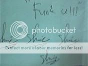woo hoo! my hse area no blackout~ safe and sound mann~ haha... poor xiao mun! did the candles burn down ur hse?!! haha~ btw, yesterday nite i went for this farwell dinner wif some of my colleague! real fun lor~ haha... nice food too... joke like mad lor, came here only for less den 2 weeks, i already felt tat i'm part of them liao... nice ppl lah, willing to share and teach! nice to chat too... we not only chat abt work, study, we too chat abt personal things... stay here for such a short time, already create a slogan, 'fill in the blank'! haha... funny ppl lah... ya, during working hr, while i was slacking, the 3 technicians ard mi were all dancing! OMG! laugh like mad sia! den while i went for lunch, this sicko 'GAY' technician wrote something in this booklet which i'm handling wif~ will show ur wat he actually din... taken down by my phone liao! bth ah...