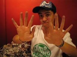 clearing up the mess~ but i'm not tat kind of bad person... i did bought him a t-shirt... fresh box or something?! a brand tat he been wanting~